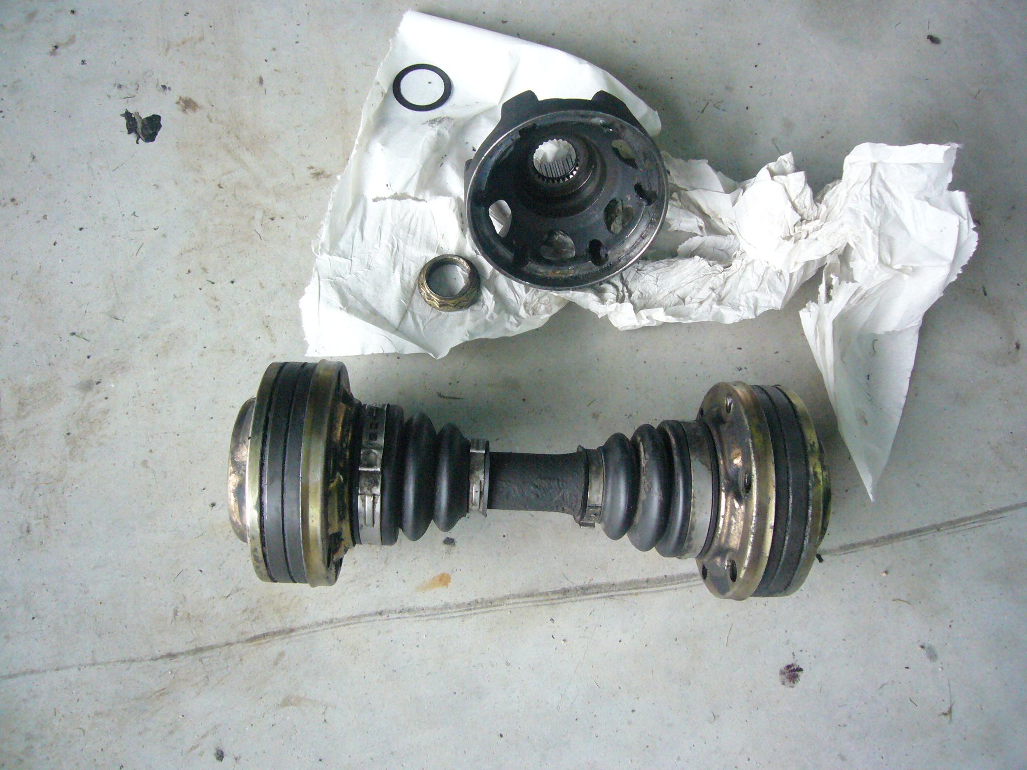 Nei, det skal ikke være noen slakk, dessuten tror jeg det er olje i disse CV-leddene, som W123/W124.
