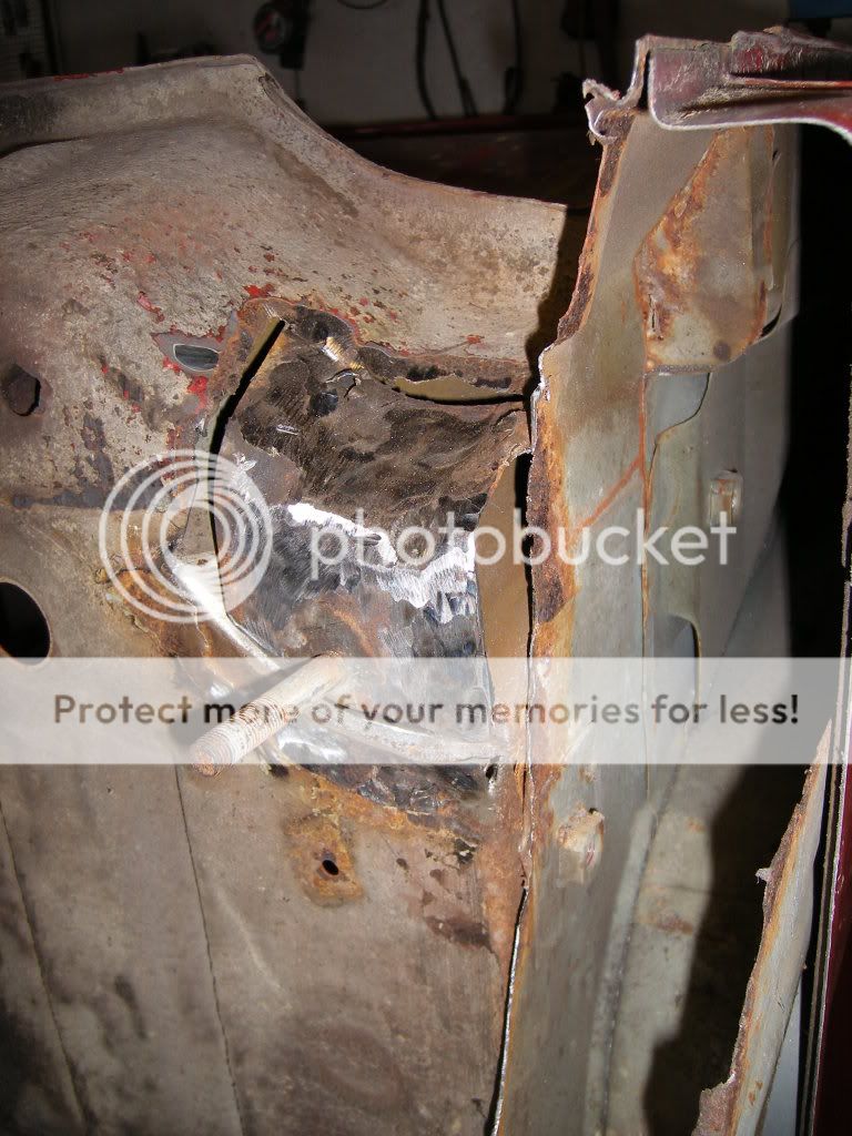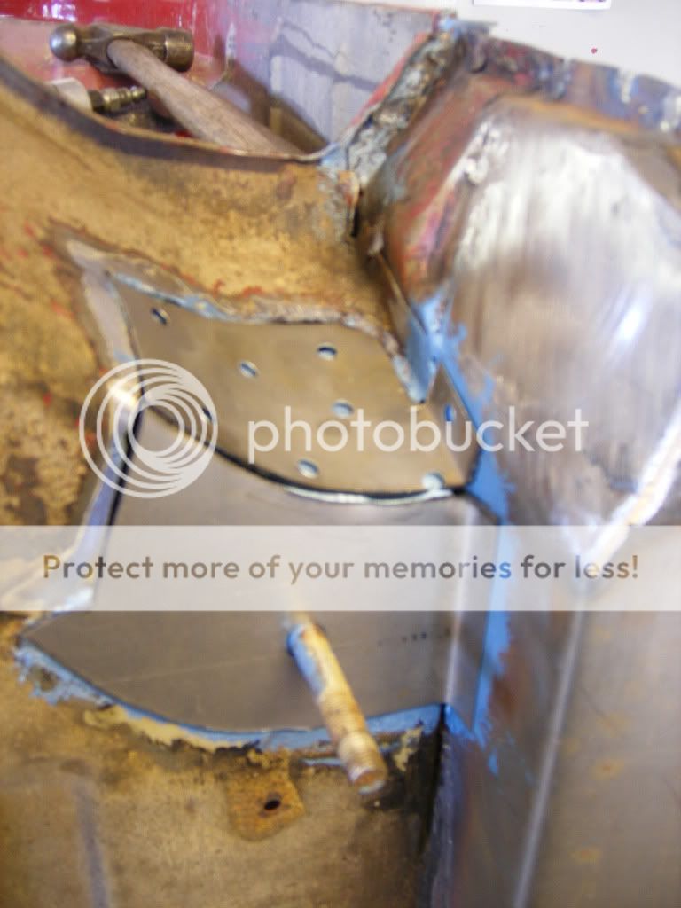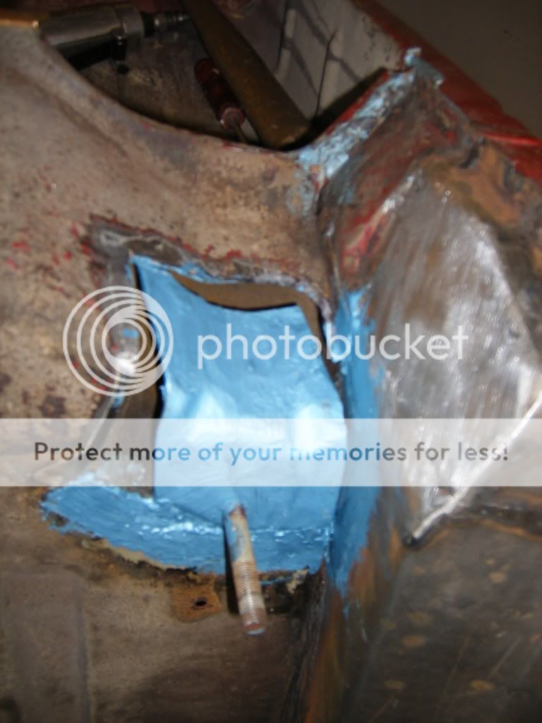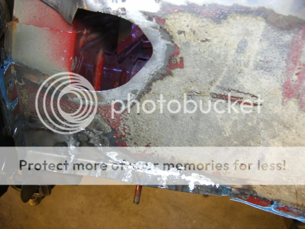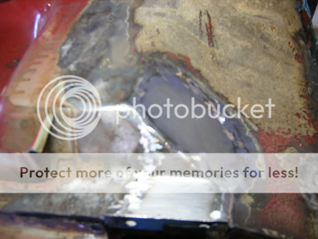 er så usikker på hva jeg skal gjøre her. på bildene så ser man en brun stripe langs hele kanten av veggen, og der er det rust. det ligger sand/rust/sikaflex mellom de to platene som overlapper hverandre. og så er spørsmålet, skal jeg kappe av hele den nedre delen av bakveggen, og lage ny? skal jeg borre opp punktene i bunnen av veggen der og få reingjort mellom platene og så satse på at jeg får sveisa det på plass igjen? eller skal jeg gi blanke F i det?