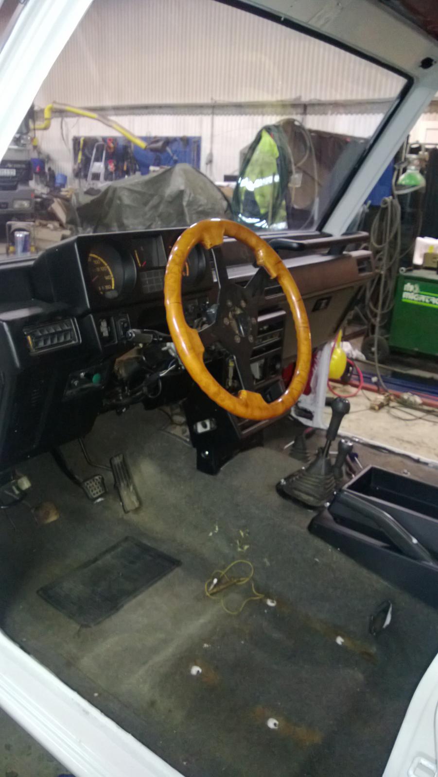 Har startet motoren nå. Den stopper på nøkkelen.Blir det hvit hammerslag på hele bilen?