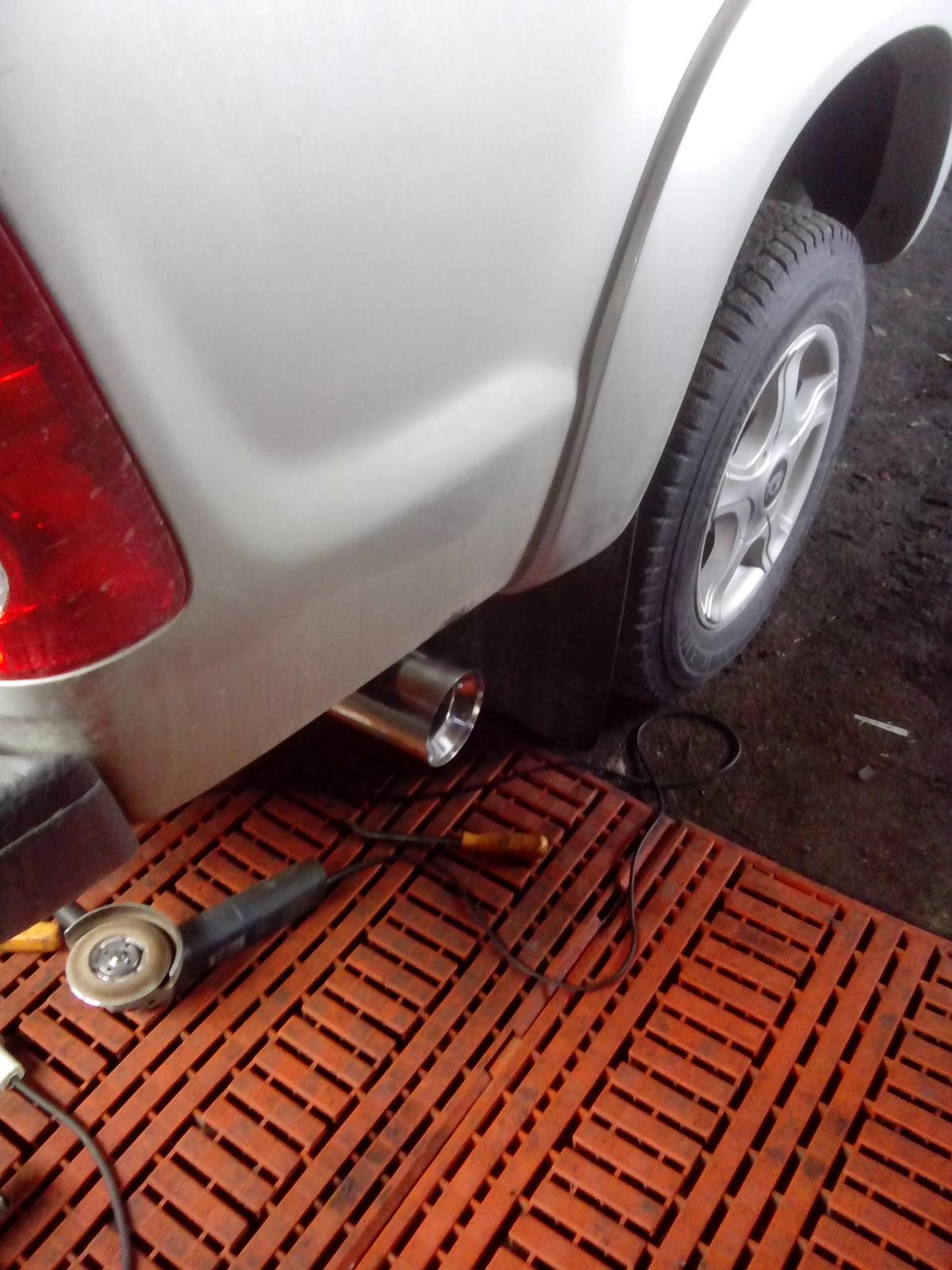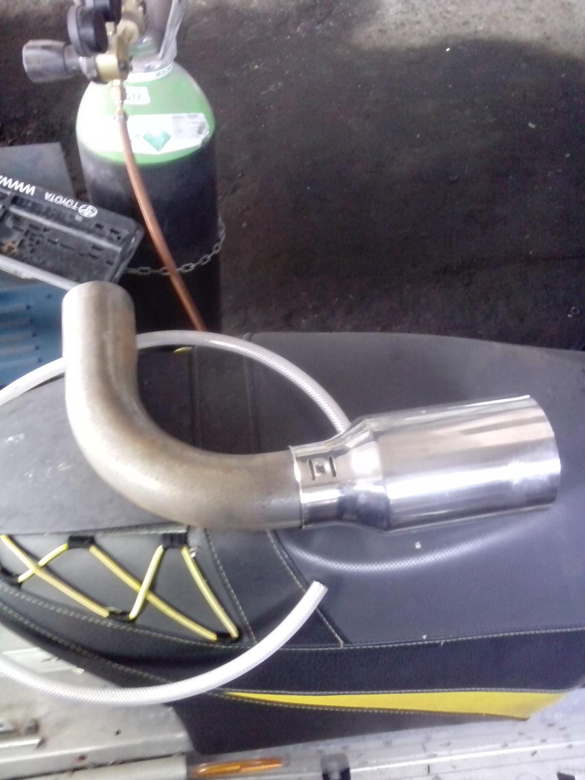 Og når æ har tusla rundt bilen så har æ lagt merke til att eksosen bare ende litt sånn midty under bilen, ikke spesielt pent så æ fant en 90 graders bend etter ei G-wogn som fikk 2,5" eksos og kjøpte på biltema en sånn fin og blank stuss. skal monteres ganske straks