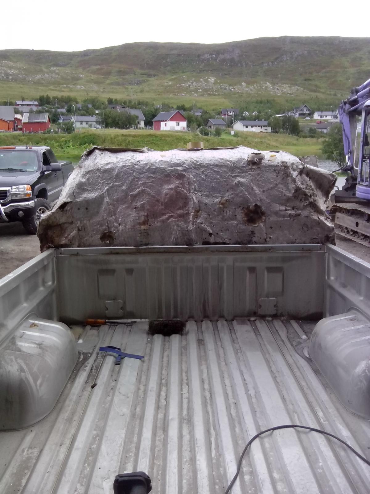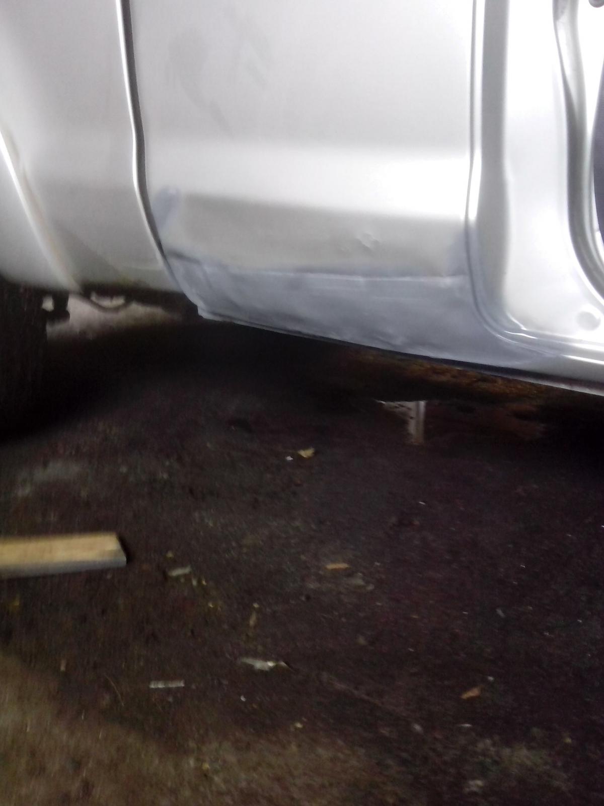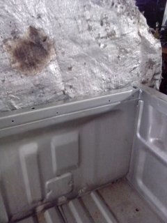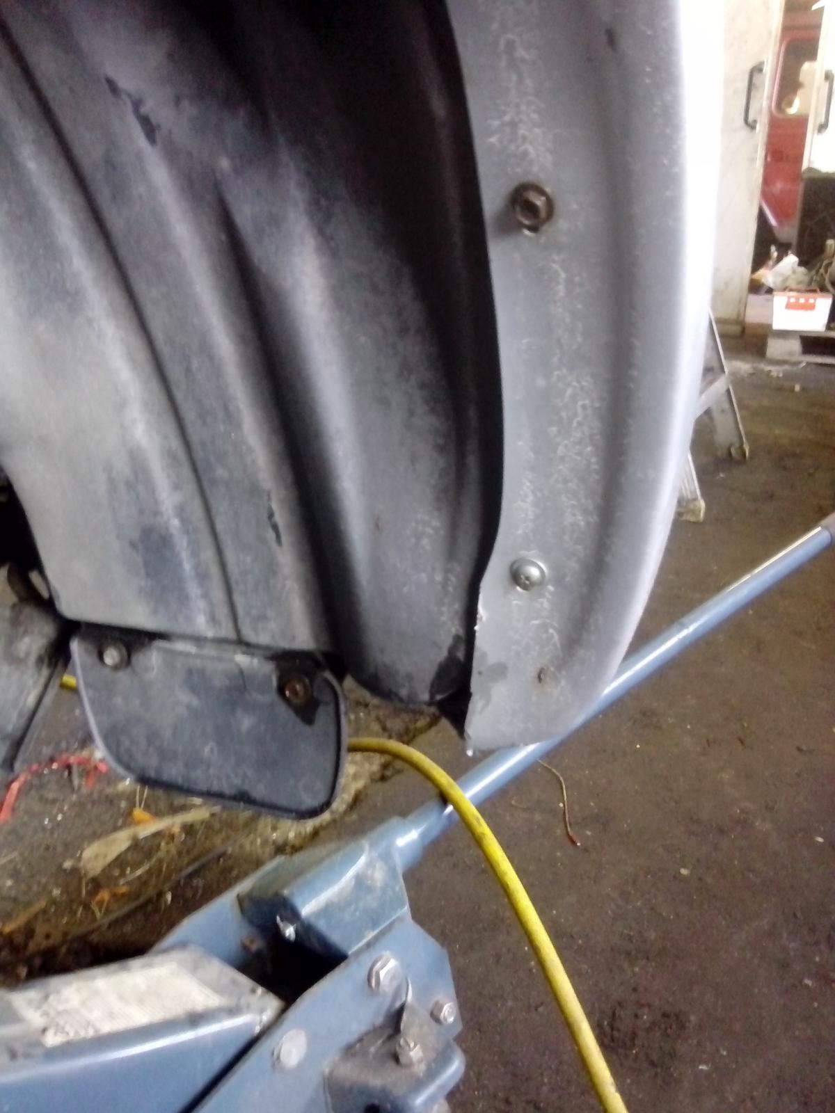 No har æ vært og gjort mæ ferdig med og støydempe bakveggen og begynnte med og rette ut den ene bulken på høyresia, men æ gikk fri for sveisetråd på lille apperatet og har ikke leita på lageret om æ har mer.