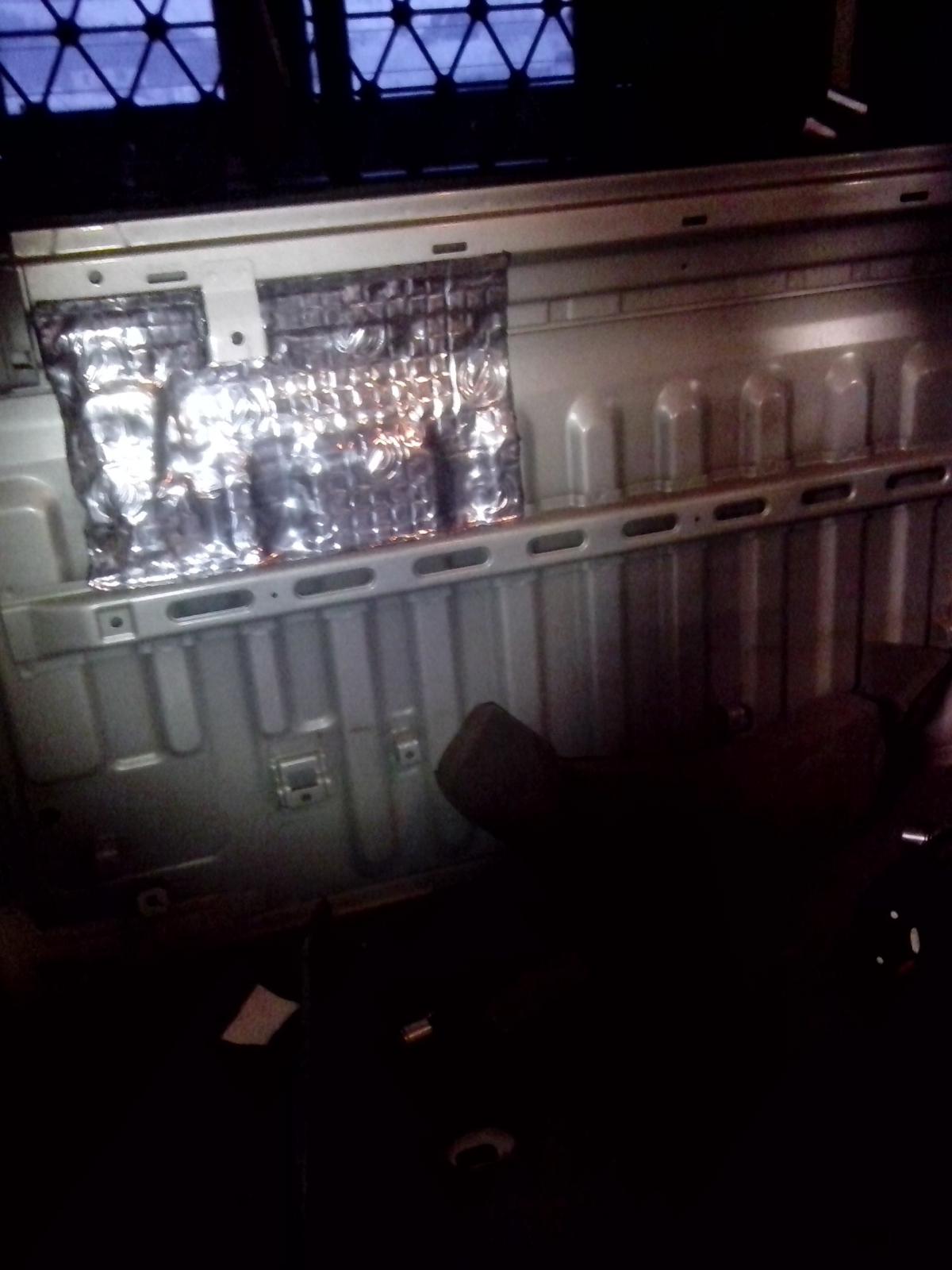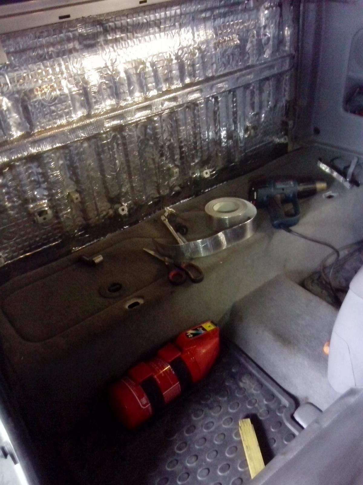 Og fant ut att den "benken" som e underbaksetet kan skrues laus, så da blir det lett og støydempe hele golvet.