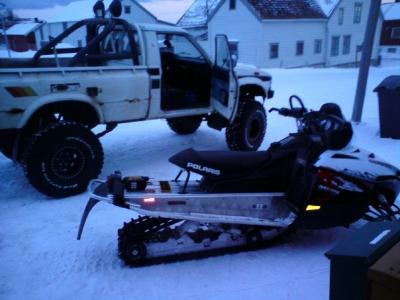 Her e da bilde av skutern æ brukte intill æ ble gammel nok til å kjøre biln på bildet(forøvrig en Hilux 89 sr5 ). Planlegg ny skuter til vintern.