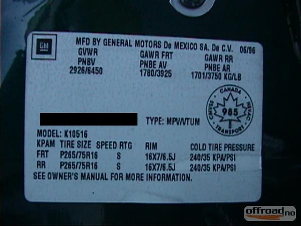 var forresten å så på den tahoen jeg skal kjøpe idag,, den lappen i sjåførdøra, dær var totalvektverdien strøket over med korekturlakk!!!!!!!!!!bergheim????????