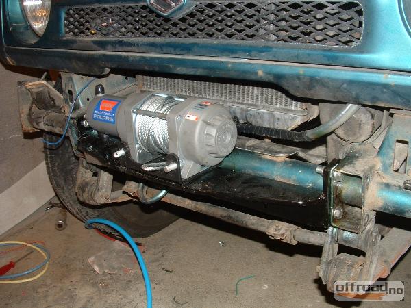 Vinsjen er skrudd rett fast i støtfangeren, med noen ganske kraftige skruer.