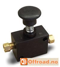 A simple and affordable solution for a hydraulic parking brake. This inline hydraulic lock made by Jamar works by pushing down on the brake pedal while depressing the park lock. To release pressure again simply release the park lock while pushing on the brake.