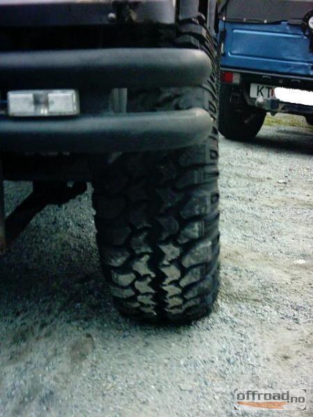 TrXus 31" på Sj 410.... passa greit, kun subbing ved full sving i ramme/fjær.... måtte kutta litt i feste te rørfangaren..... Gleder mg å få dekka på min zuki:D Monty va lite gira å bytta tebake te "sykkelhjul" hehe