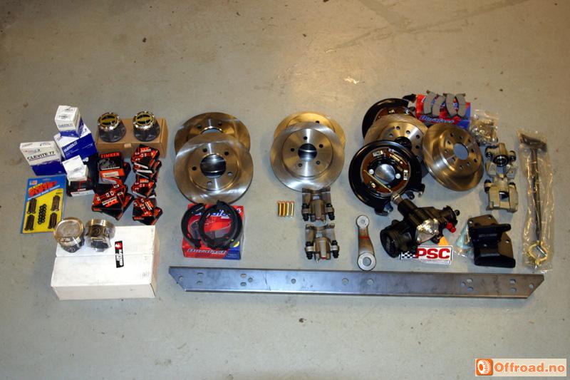 -Bremseskiver, klosser, hjullager og pakninger til forakselen.