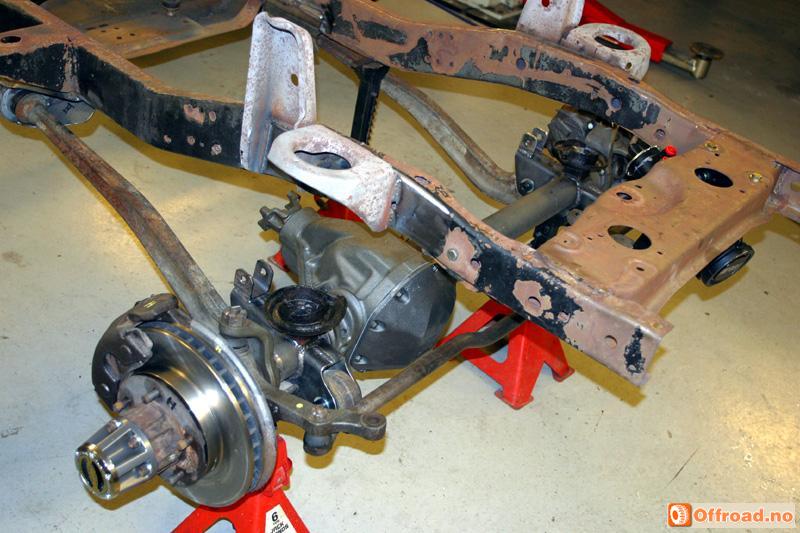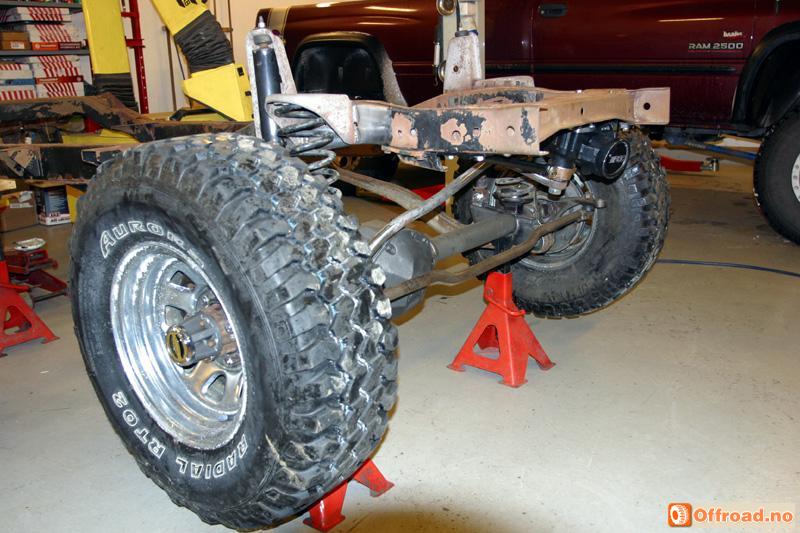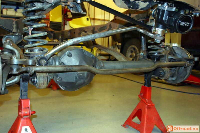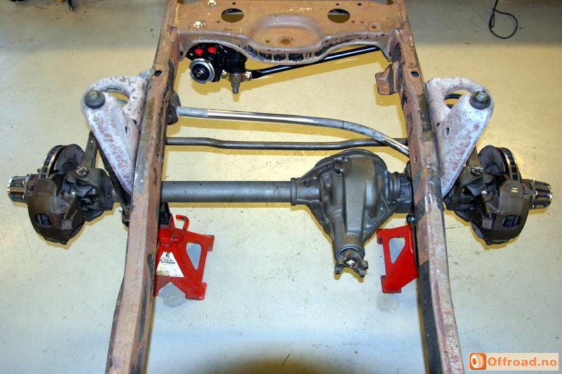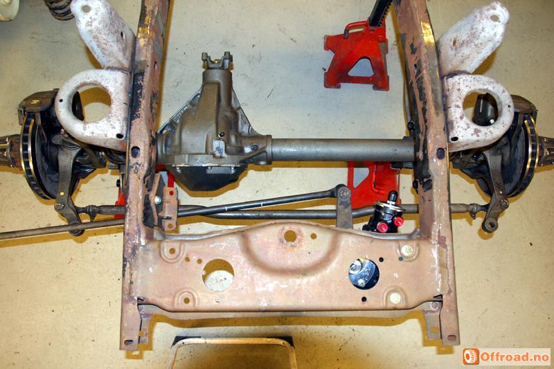 Jeg brukte også opprinnelig Dana 44 aksel fra Scout som ble kortet inn på "lange" siden, men har etter hvert gått over til en Ford 9"/Dana 44 hybrid aksel.