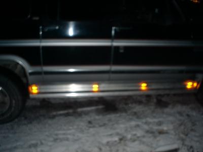 Monterte på sidemarkeringslys i stigtrinnene i dag. Ble bra. Er av led type med blanke glass. Di er ikke så synlige når lysene ikke er på.