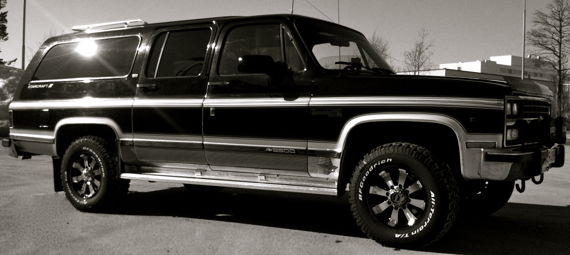 Ellers har jeg hat en tanke om å få gjort noe med Suburban i forhold til at den sager så snart det blir last i den. Da bilen er nedregisrert er det et fjærblad for lite. Løsninga på dette kommer på 3200 kr.... Da blir det luftfjærer bak med kompressor.