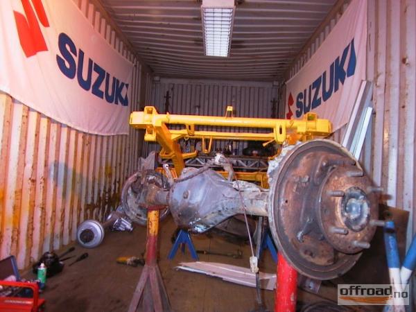 Hilux bakakselen er 16cm bredere mellom flatene på trommlene der hjulene sitter...i forhold til Zuki-akselen...
