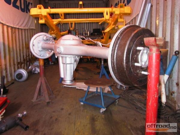 I telefonsamtale med Pål her på forumet, fikk jeg et godt tips om å sette den diff'n med brems fremme og sveise diff'n fra forakselen og sette den inn bak...
