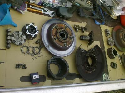 Skal bytte til samuraiaksling foran, den er ca 80 mm bredere enn den originale så setter jeg på ARB og overhaler akslingen med alle lager og pakninger nye.
