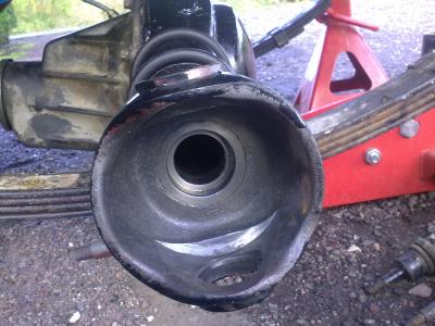 Da er det bare å sette inn stikkakslingen og få den til å entre i ARB. Det er enkelt,mye lettere enn foran hvor en har et ledd ytterst på akslingen å ta hensyn til.