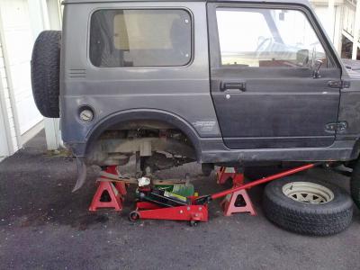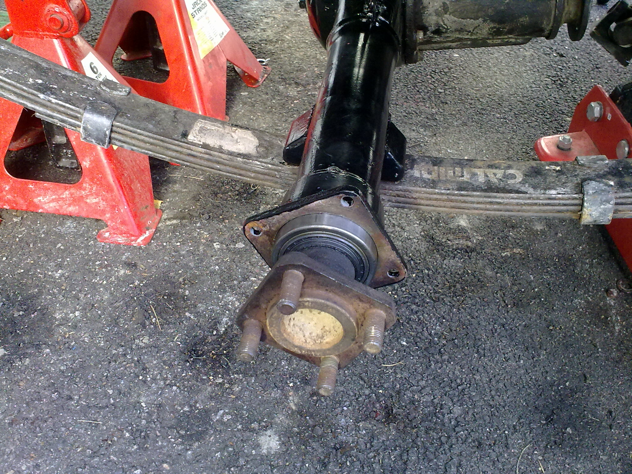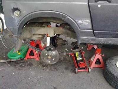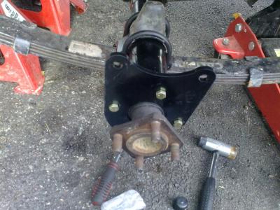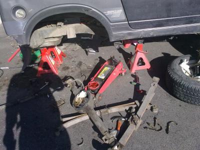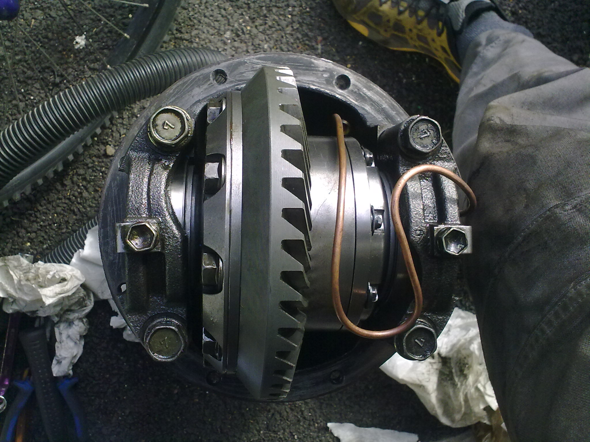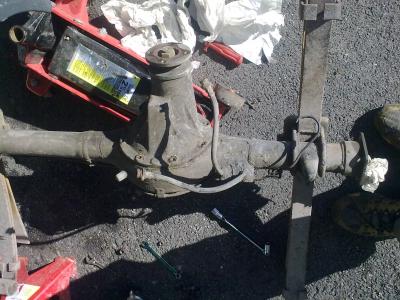 Siden jeg er ferdig med forakslingen og har fått hevet den og satt inn ARB (den blå luftslangen synes så vidt på det øvre bildet) s er det bakakslingen som står for tur.