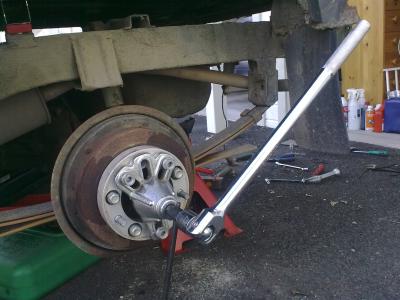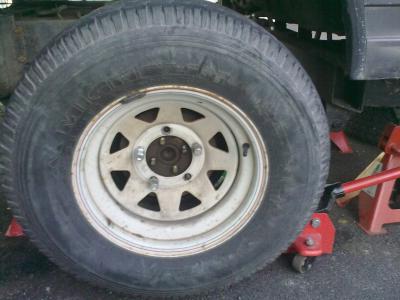 Et kjent problem er det å få av bremsetromlene og det å skru dekk/felg nesten av og bruke det som slaghammer med å røske det ut virket absolutt ikke (De fire senterboltene var selvsagt løsnet først) Bremsetrommelen satt som bare helvfaa..