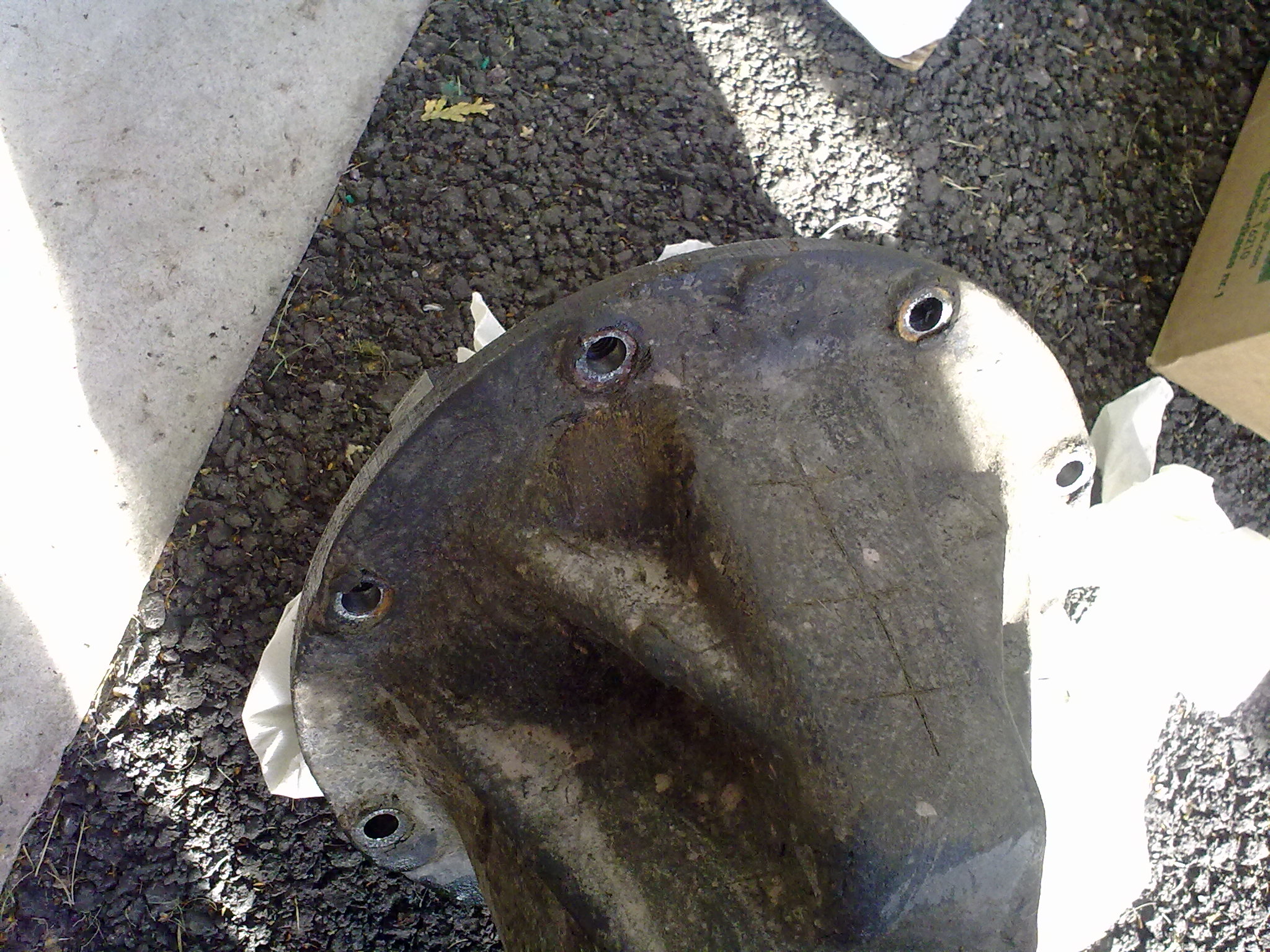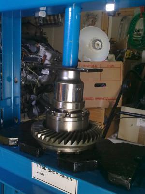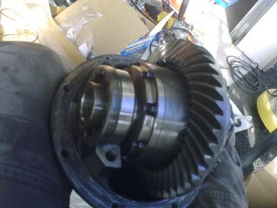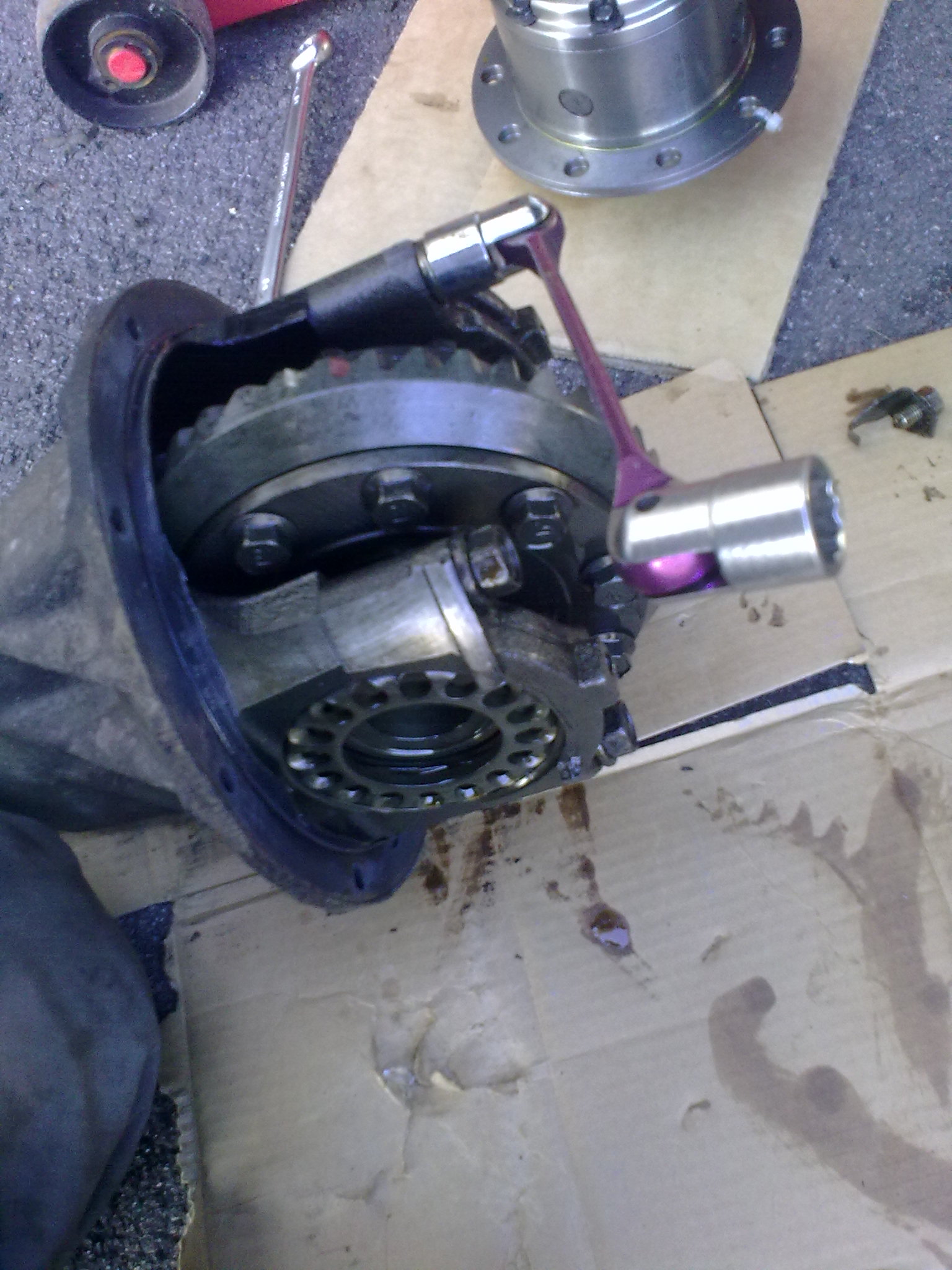 Her er diffklumpen løsnet fra akslingen og nå er neste steg å skru av selve diffen for å ta av kronhjulet.