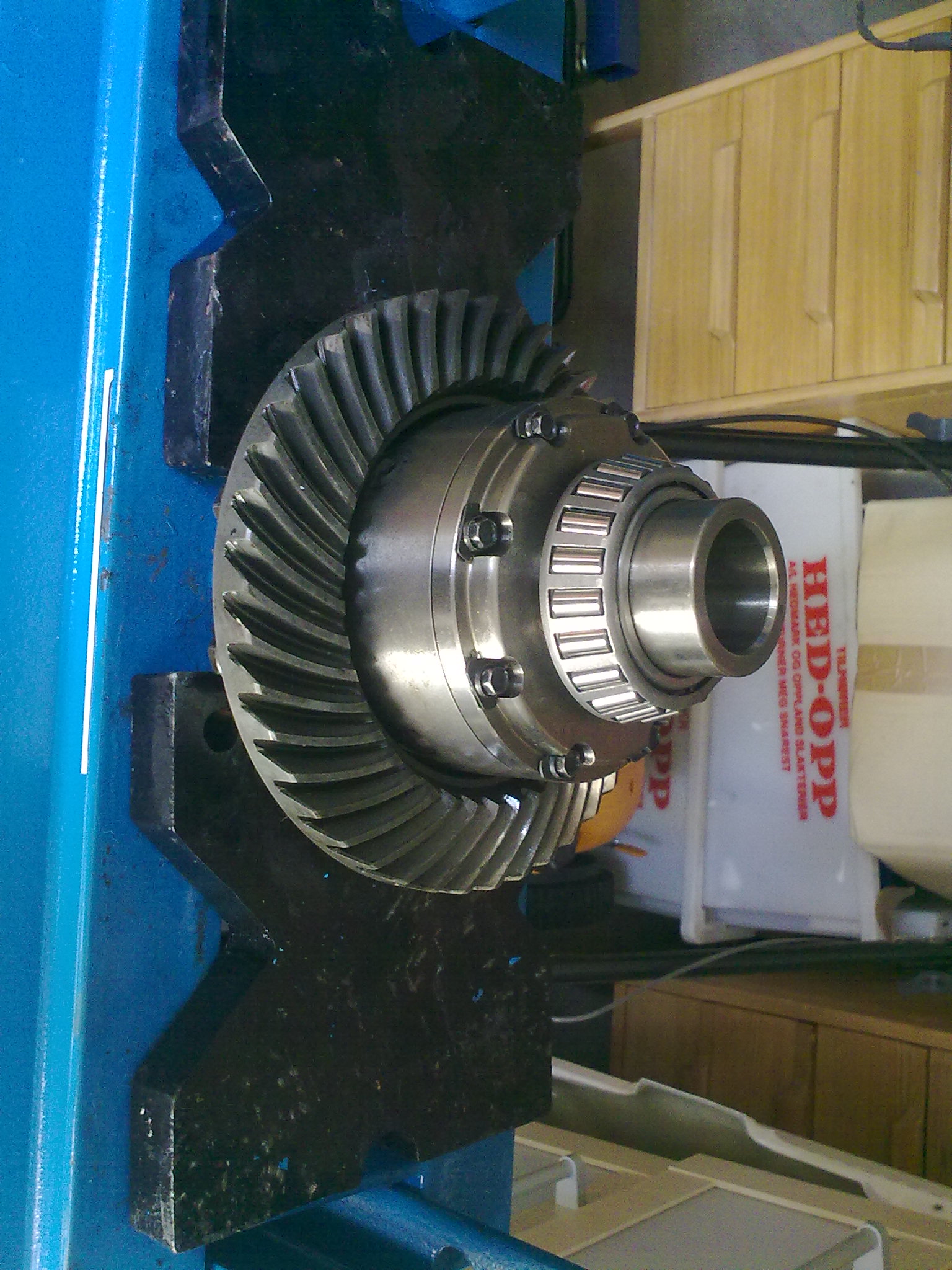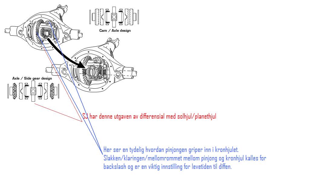 Pass på å sett lagrene rett vei ellers blir det lett ugreit når du begynner å stramme opp for å stille inn backslash`en mellom kronhjulet og pinjongen (slarken)