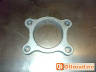 Har tatt bilder av Eksosflens og flens til Innsug som jeg har laget. Er laget i 10 mm rustfri og skjert ut i vannskjerer
