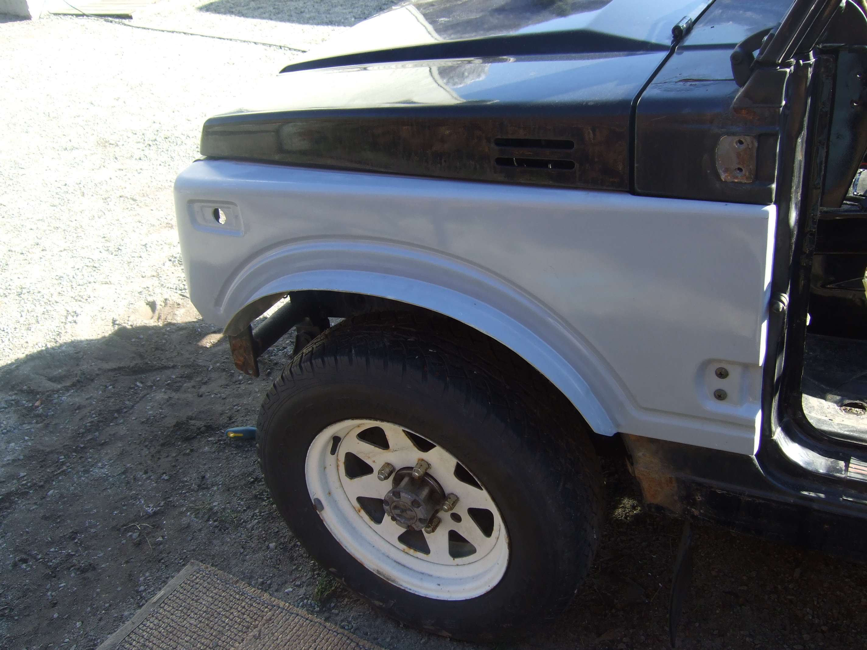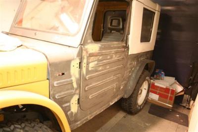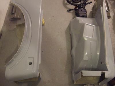 Den ene SJ min blir bare glassfiber. Skjermer, panser, ruteramme, balje, baklem. Siden ramma er epoxybehandlet er jeg kvitt rusten for godt.