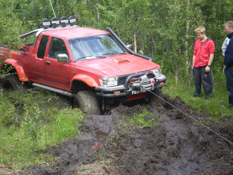 .....men...... det blei litt surr under filminga på sluttn ...... når han kurt skulle forsere gjørma...... det va slutt på kasetten og i kampens hete.... satte æ inn igjen samme kasetten...... skjønte ikke helt koffør den ikke va tilbakespola. Spola så en bette tilbake....filma han kurt.... og for heim. Når æ da skulle se på filman...oppdaga æ tabben. han kurt har havna over han vidar akkurat når han kjørte ned i stordumpa, der blingblingfangern blei ødelagt. Så den seansen må vi se førr oss med øyan lukka. Beklager vidar...