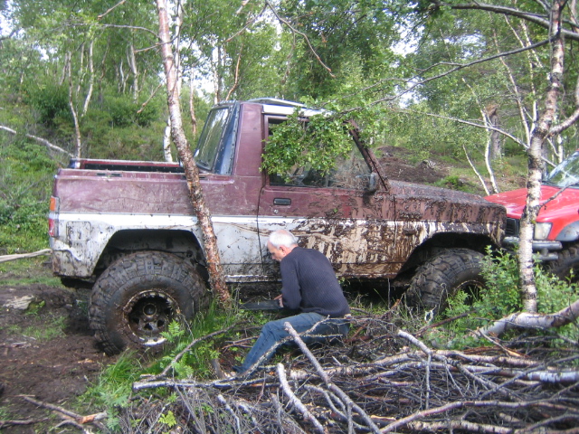 I prossessen vrengt han Tor Einar av ett dekk.. nokka æ ikke har bilde av.. førr da saga æ ned fleire buske som kom i veien førr framfarten!