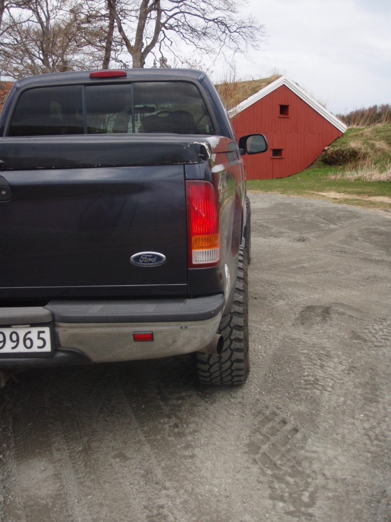 Med tanke på akselavstand e den ikke så grusom... 2300 mm fra første til andre aksel. Akselavstand til midt i mellom boggien e under 3000 mm(punktet bilen svinger etter). Flere biler med 2 aksler som har lengre avstand en det. Tippe en lang Patrol eventuelt en pajero har også det. Kansje hi-lux også.