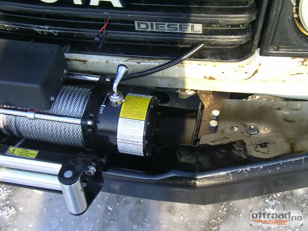 Her e første "vinsjprøven"! Overaskende lang wire! Men den vinsja jo som et lite helvete! Så det der va skikkelig gøy! Å endelig få den montert! Vinsj e tøfft!